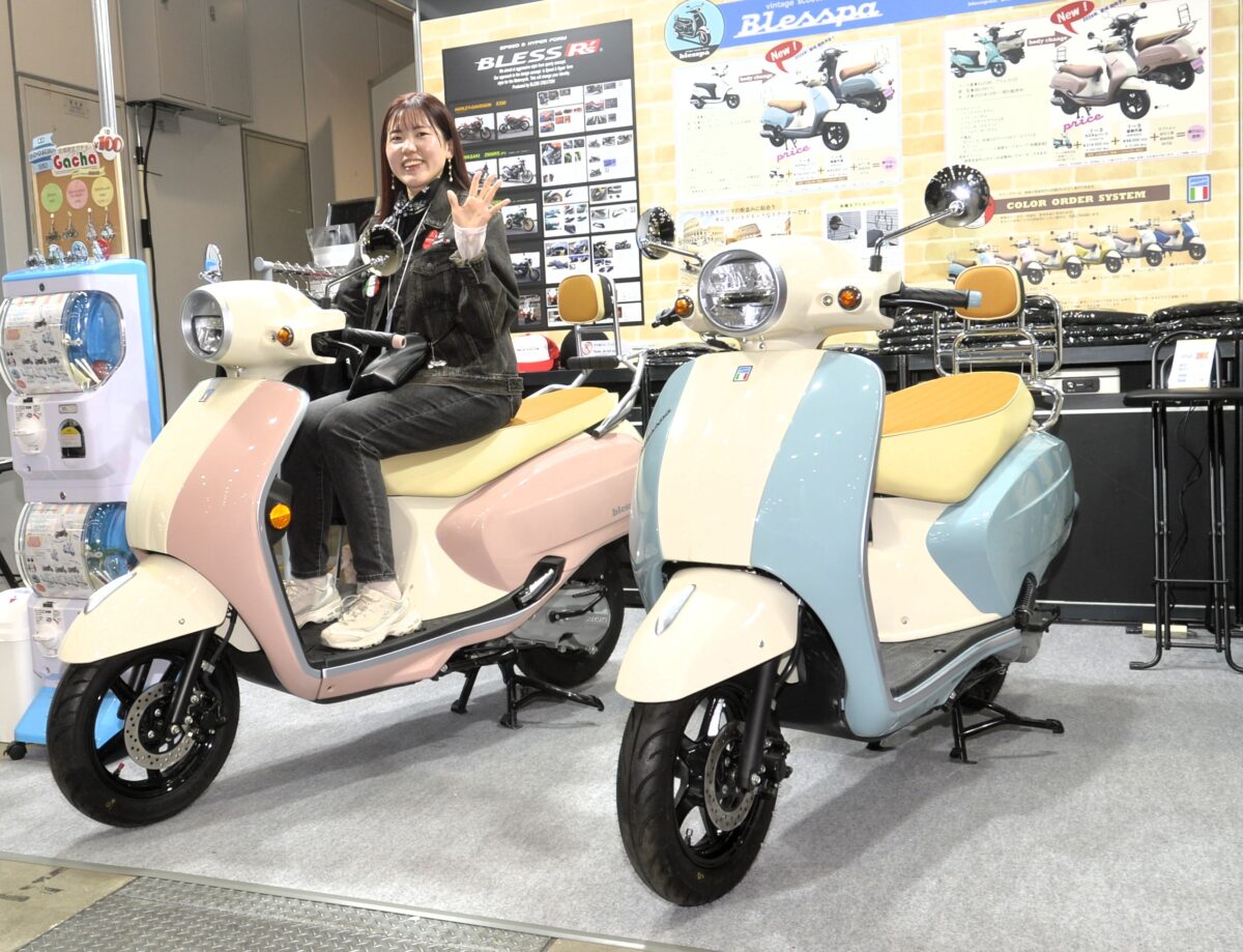 ヨーロピアンクラシックの外観ながら、ベース車両はスズキのアドレス125を使用した新ブラント「Blesspa(ブレスパ)」に熱い視線が集まった。