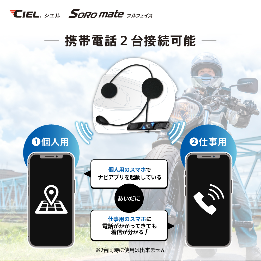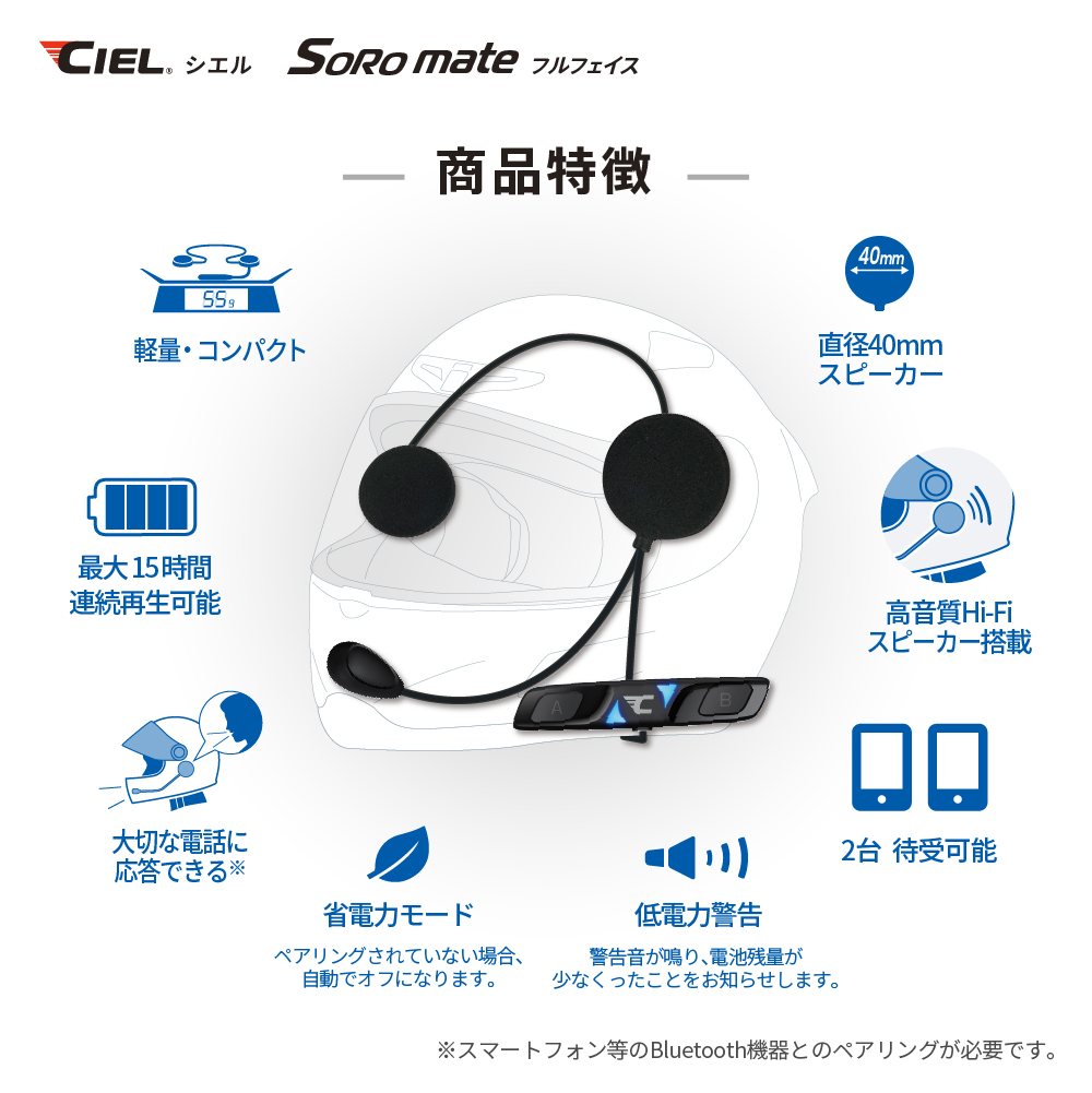 CIEL(シエル)総発売元の株式会社 LINKS (京都市中京区: 代表取締役 澤田大祐)はフルフェイスヘルメットにご使用頂ける オートバイ用 Bluetooth ヘッドセット 【ソロメイト フルフェイス】 を 2023 年 5 月 22 日より新発売致します。業界初となる、フルフェイスヘルメット専用の Bluetooth ヘッドセット。ツーリング先でスマートフォーンのナビ音声や音楽が聴ける、楽しいツーリングにお役立ちのアイテムです。