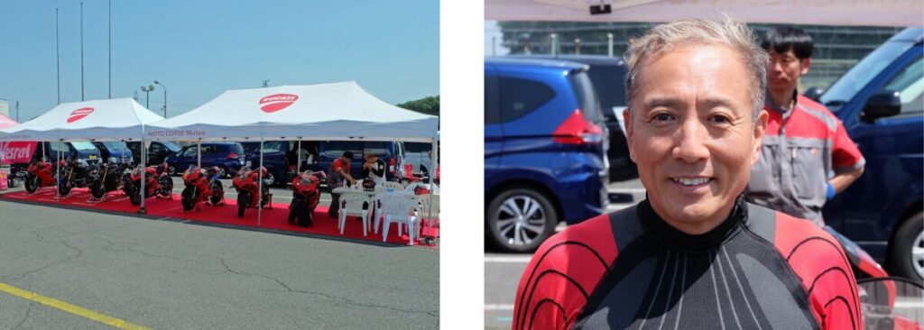 10人のお客さまと一緒に参加した「モトコルセ」代表の近藤さんは、「知ったもの同士で楽しむというのがいいですね。走った後も楽しめますから。また、あまり走行する機会がない筑波サーキットというところもとてもいいと思います。全日本選手権も行われるサーキットですから、オフィシャル感というか、緊張感が少し感じられるのもいいですし、筑波の面白さを知ってもらえてよかったと思います」と語ってくださいました。