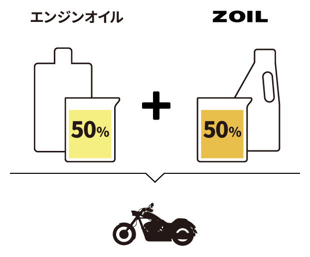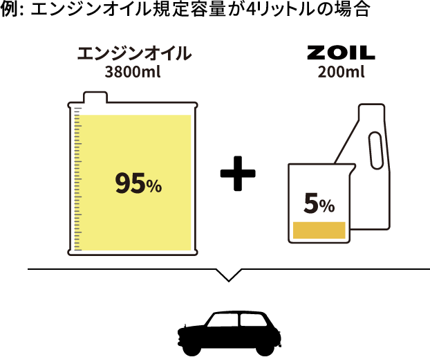 既に使用しているエンジンオイルにスーパーゾイルを規定の添加率で入れるだけでOK!