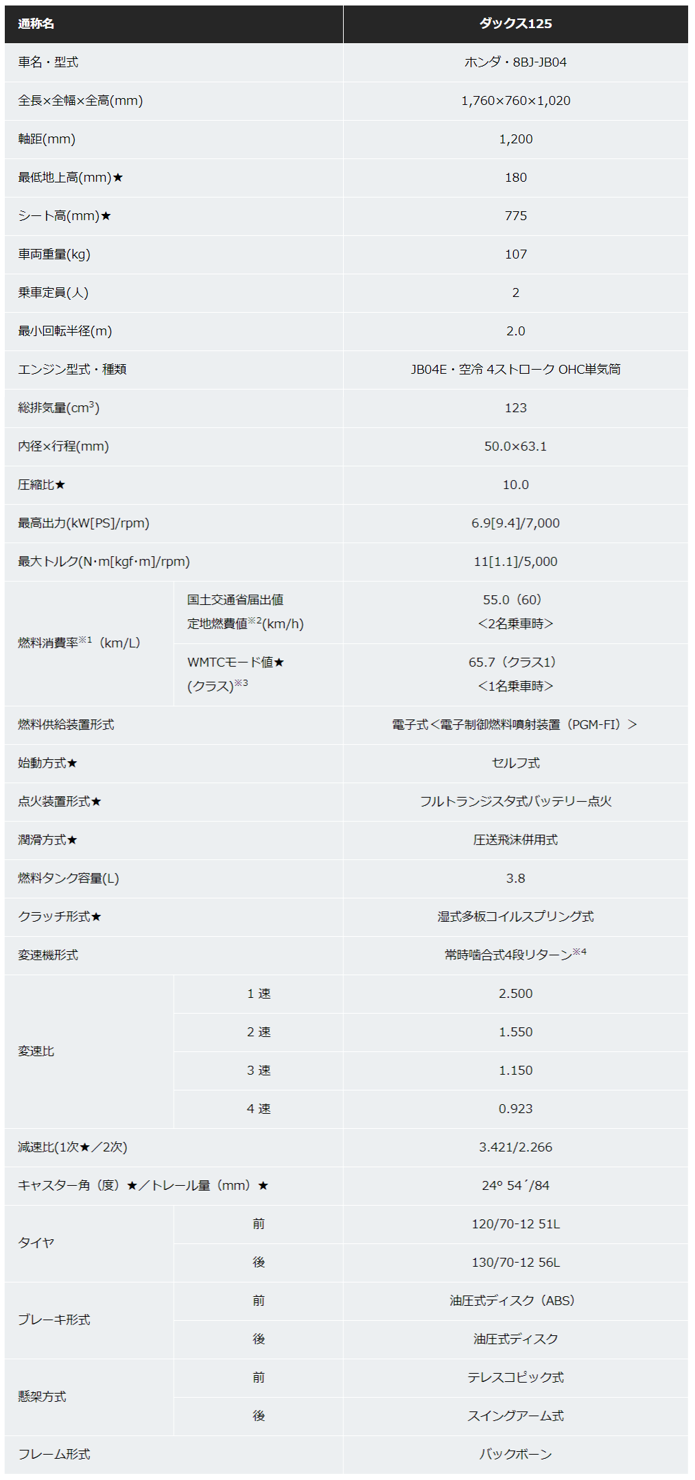 ダックス125は、Hondaの歴史あるプロダクトブランド「ダックスホンダ(1969年)」のスタイリングを踏襲しながら現代の感性を取り込み、大切な家族や仲間とともに楽しんでいただくなど、幅広い層のお客様に好評を得ています。