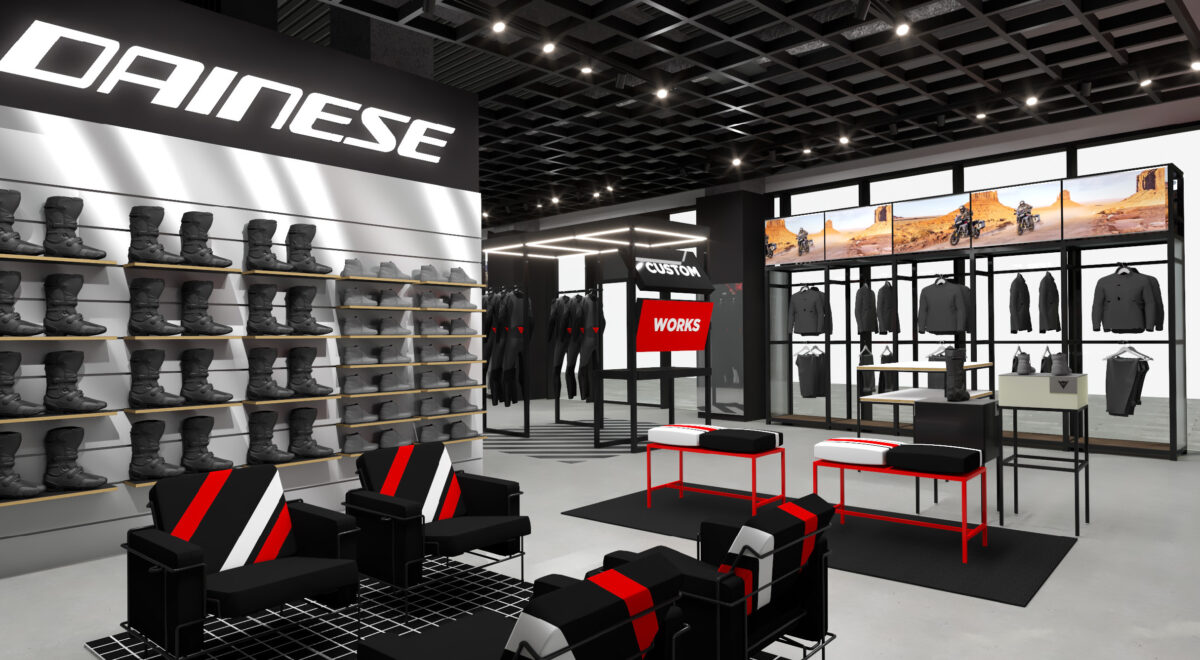 ダイネーゼ大阪は、イタリアの高品質なバイク、スキー、MTBウェアを提供するダイネーゼのアジアにおける旗艦店として、最新のプロテクション・テクノロジーとイタリアンデザインの魅力を体感できる特別な空間となっています。最新のCIを導入し、快適なラウンジスペースを完備。また、バレンティーノ・ロッシをはじめとするレジェンドライダー達のレーシングスーツを常時展示し、ダイネーゼブランドの豊かな歴史に触れることができます。