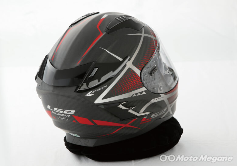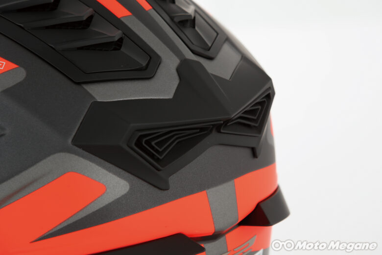 前方と上部に外気を取り込む吸気ポート、後頭部にリアスポイラー&排気ポートを装備する。