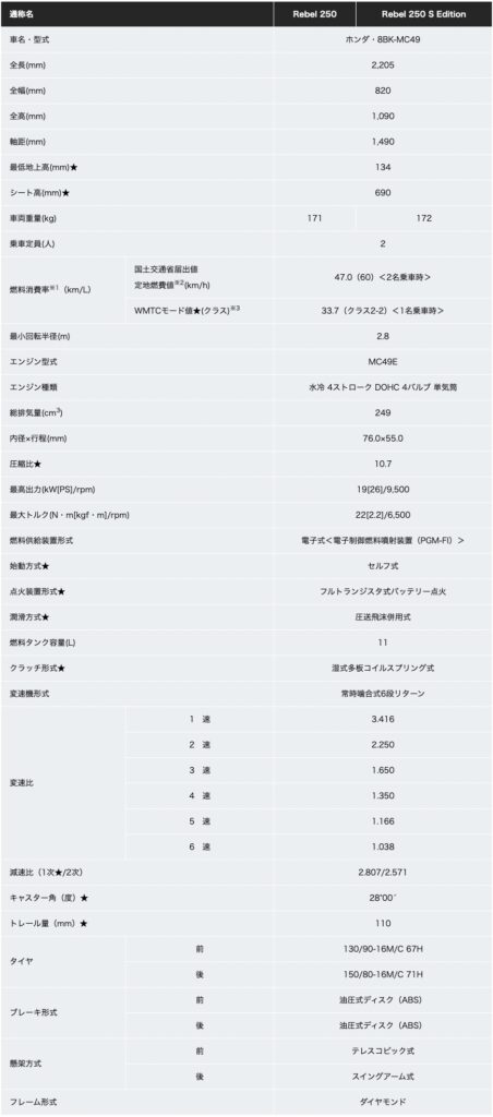 Rebel 250 S Edition649,000円(消費税抜本体価格 590,000円)