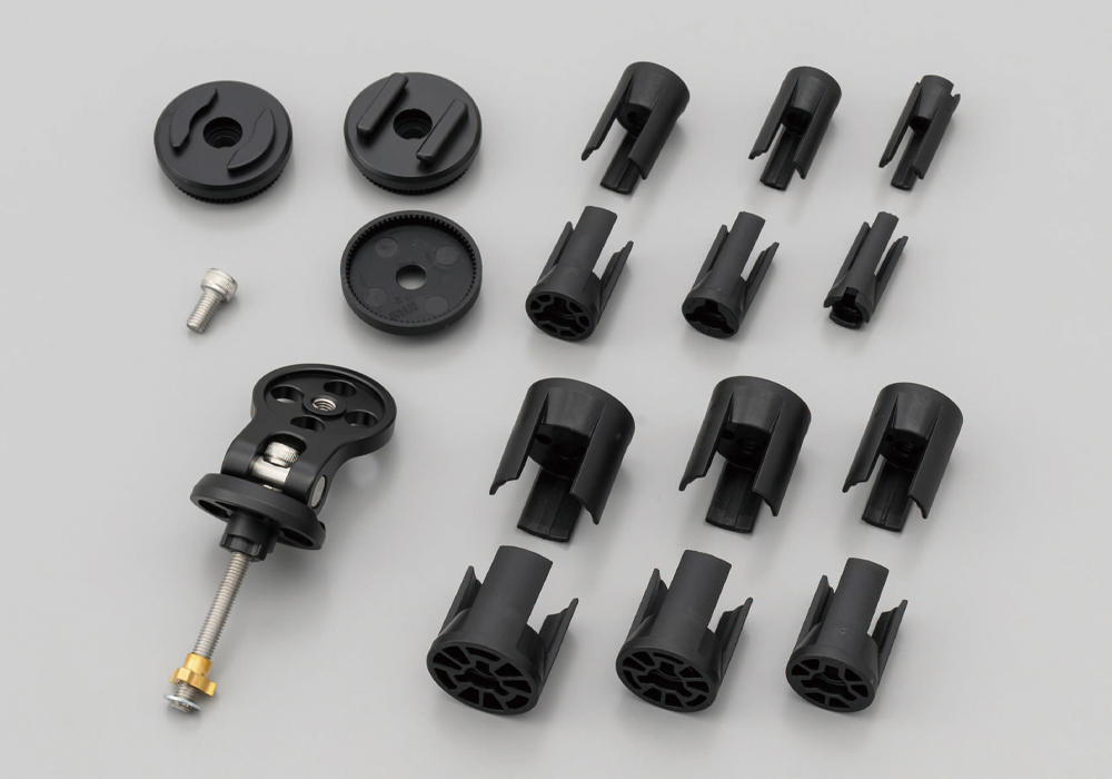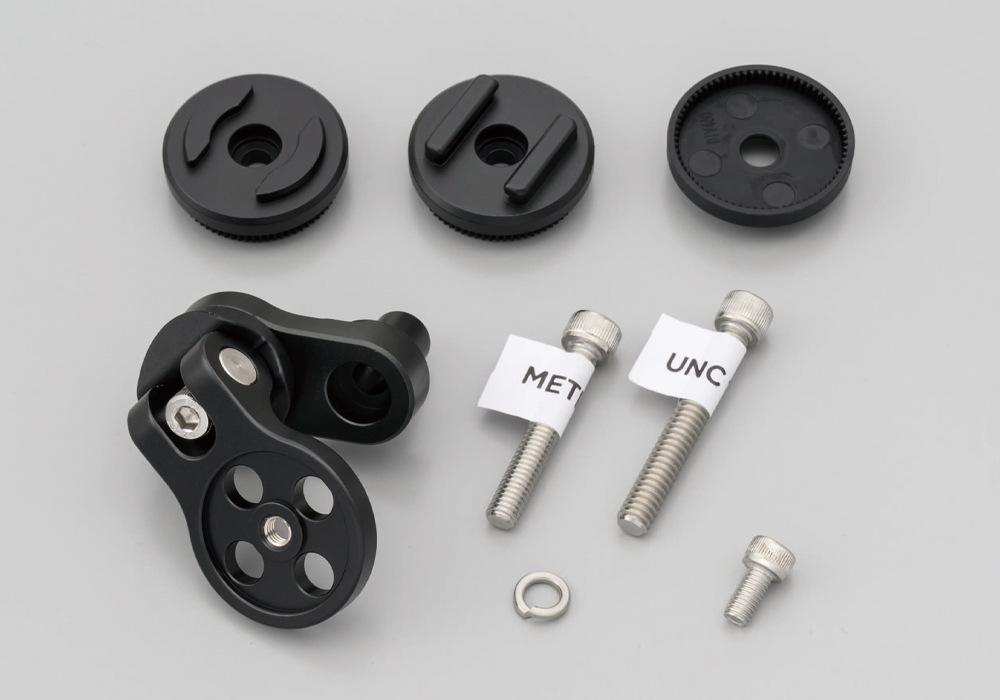 ※付属のSPC変換アダプターは樹脂製のため耐震強度が不十分です。オートバイでお使いの際はマウント側のマウントヘッドをフォンケースのマウント部分の形状に合わせてアルミ製のヘッドに交換されることをおすすめします。