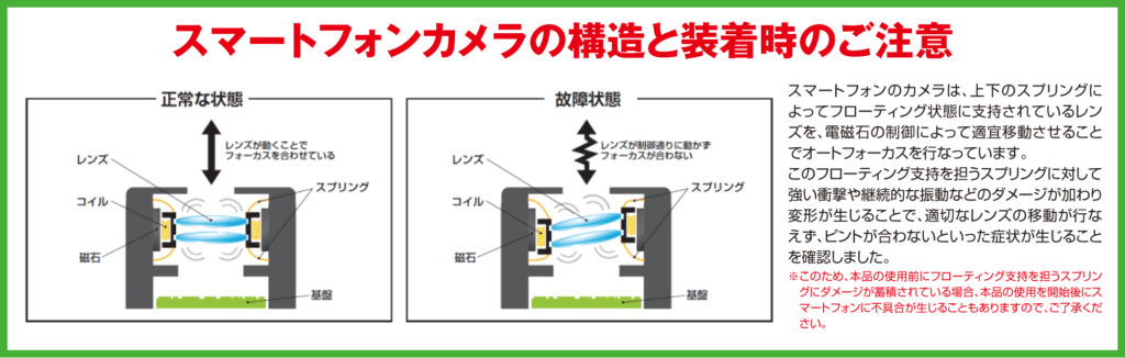 ※最新のスマートフォン(特にiPhone10以降のモデル)を使用する場合、アンチバイブレーションモジュールの同時装着を推奨します。