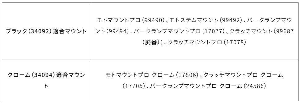 ※オートバイ固有の振動によるスマートフォンへのダメージをさらに軽減させるため、アンチバイブレーションモジュール(34092/34094)もしくは、チャージングアンチバイブレーションモジュール(34181)の同時装着を推奨します。