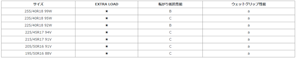 ★=EXTRA LOAD規格(負荷能力強化タイプ)