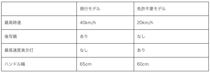 クラスチェンジ後の免許不要モデルと現行モデルの比較
