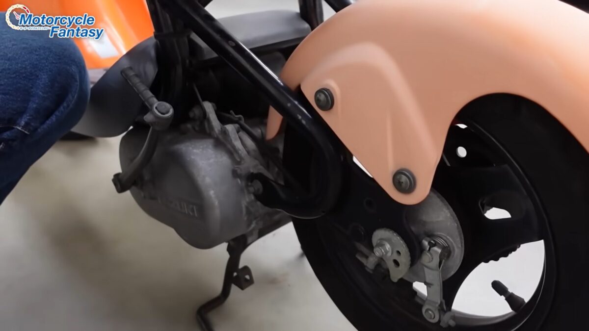 フレームは、スクーターの定番「アンダーボーンフレーム」を採用。燃料タンクをシート下に配置し、メインフレームの位置も低くなり、跨がりやすい形状になっています。後期に追加発売された「チョイノリSS」は、フロントカウルも取り外され、骸骨のような姿になりました。