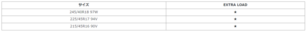 ★=EXTRA LOAD規格(負荷能力強化タイプ)です。