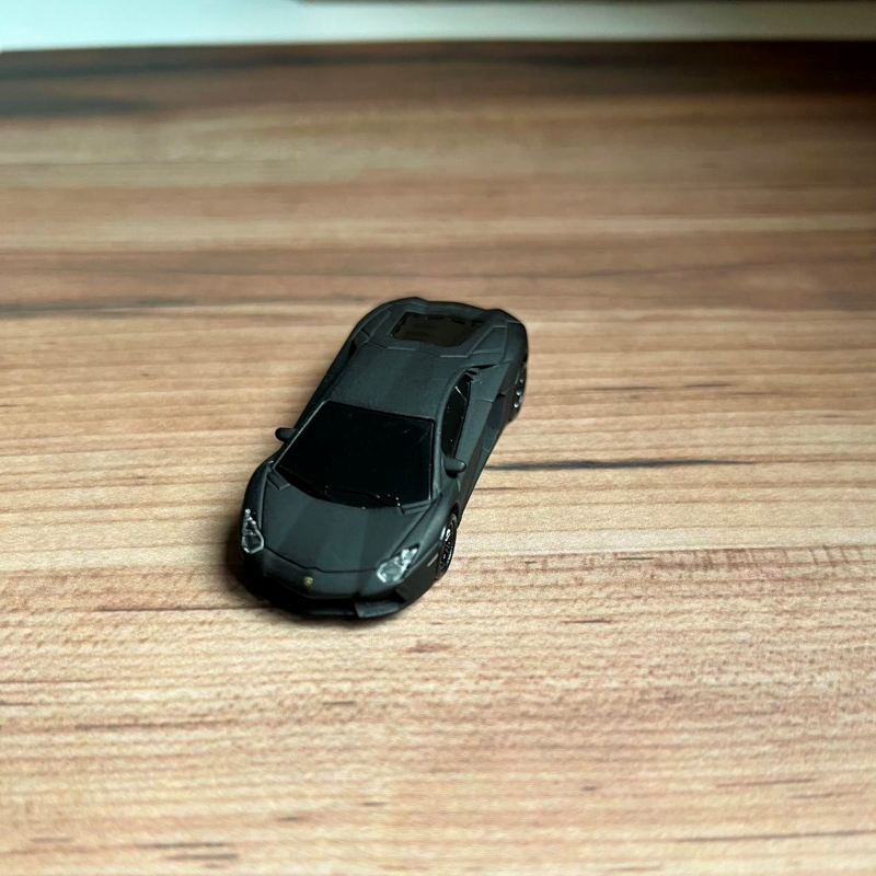 ミニカーはマウスと同車種の ランボルギーニ・アヴェンタドールで、特にプレミアム感を感じることのできるマットブラック塗装。ダイキャスト製でタイヤも回る本格的なミニカーです。
