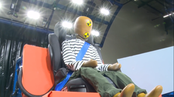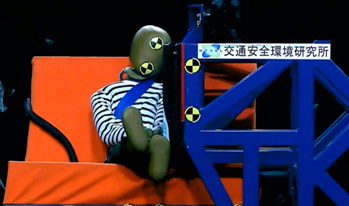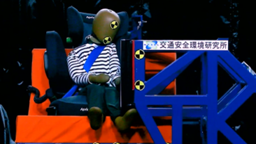 テストでは、従来の安全規則「R44」に加え、新規則「R129」のチャイルドシート(ジュニアシート)にて衝突試験を実施し、側面衝突時の衝撃を計測した。チャイルドシート(ジュニアシート)には6歳ダミー(約114cm)を使用し、衝突時の挙動も計測をおこなった。