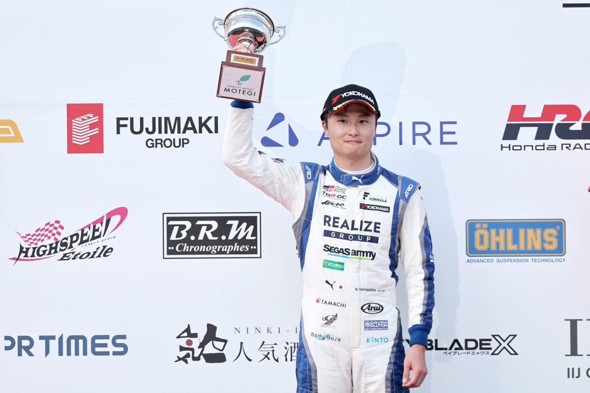 スーパーフォーミュラの第5戦がモビリティリゾートもてぎで行われ、ポールポジションからスタートした山下健太(KONDO RACING)が今季2度目となる2位表彰台を獲得。8番手スタートから後半追い上げた坪井翔(VANTELIN TEAM TOM’S)が5位。大湯都史樹(VERTEX PARTNERS CERUMO・INGING)が6位、小高一斗(KONDO RACING)が8位、福住仁嶺(Kids com Team KCMG)が9位でフィニッシュしポイントを獲得しました。