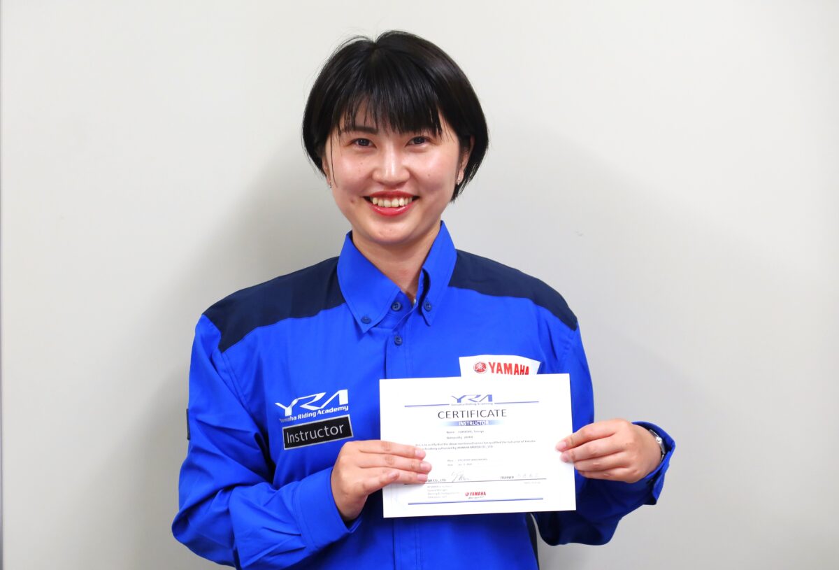同社の海外市場開拓事業部に所属する福岡珠代さんは、安全普及活動「YRA(ヤマハ・ライディング・アカデミー)」のインストラクター講習を受講して、ATVのインストラクター・ライセンスを取得。およそ20年の歴史をもつYRAにとって、ATVの女性インストラクターの誕生は初めてとのことだ。