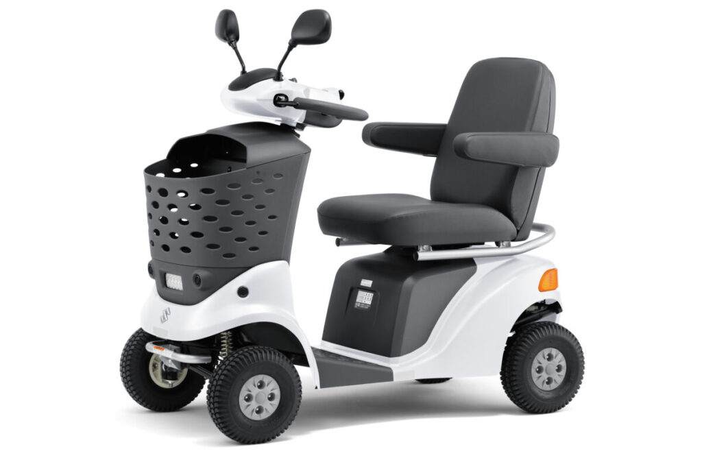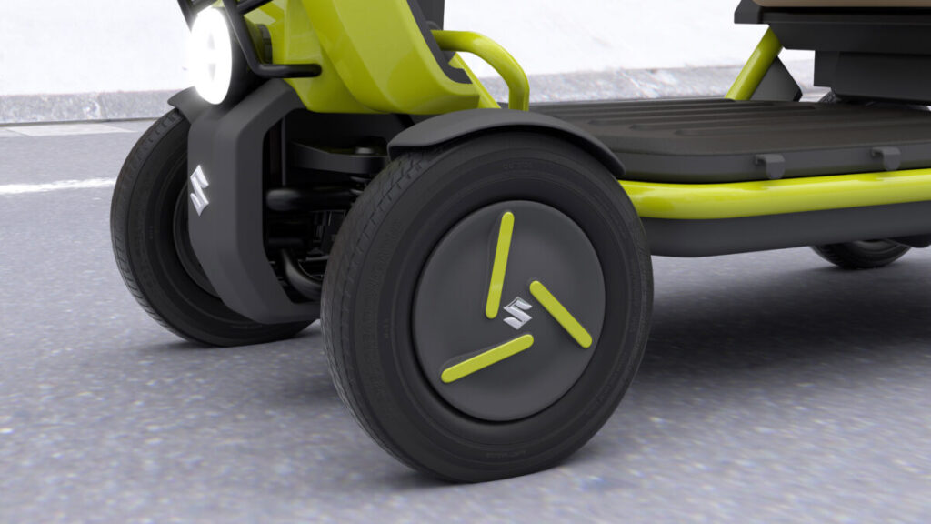 ・買い物や散歩など日常の移動手段として利用するハンドル形電動車いす「スズキセニアカー」の一部を仕様変更した参考出品車です。