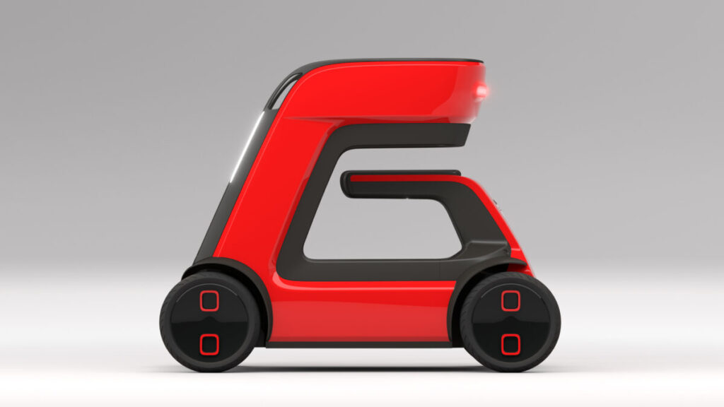 ・新たな車両区分(特定小型原動機付自転車)において電動キックボードのような手軽さを持ちつつ、転倒しづらく、四輪で安定した走行が可能な、一人乗りの電動モビリティのご提案です。