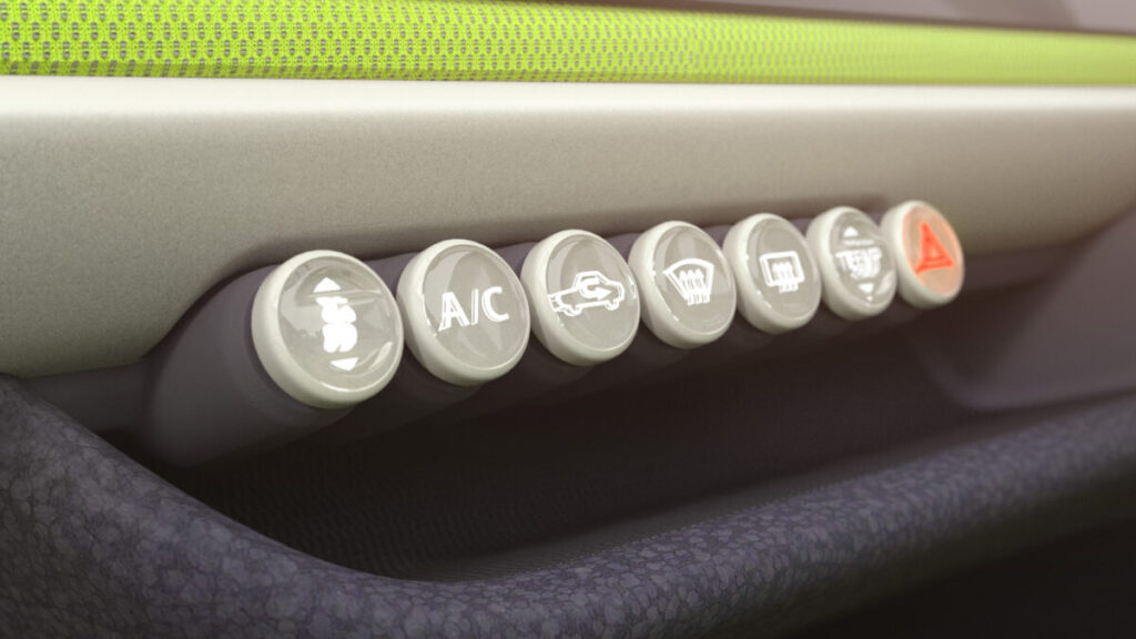 ・EV らしくすっきりとしたシンプルなボディ造形に、親しみやすいキャラクターを施したエクステリアと、軽やかで使いやすく居心地の良い室内空間で、毎日の生活を支える「相棒」のような存在を表現しています。