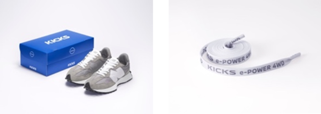 街中にぴったりなスタイリッシュさに加え、軽い履き心地と、ソールの高いグリップ性により、シーンを選ばず履くことができる「327」は、SUVらしいスタイリッシュな外観を持ち、軽やかで地面に吸い付くような意のままの走りで街中やオフロードなどシーンを選ばず運転を楽しむことができる「日産KICKS e-POWER 4WD」のコンセプトとマッチすると考えました。
