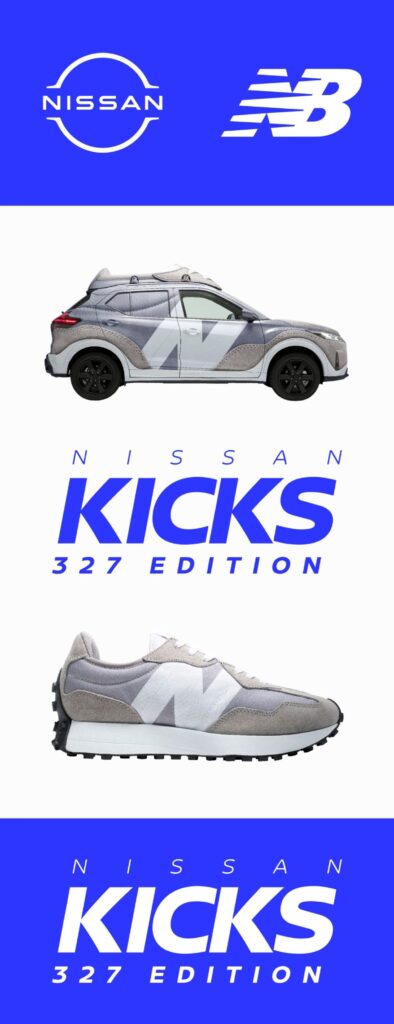 “日産キックス”と“ニューバランス”が初のタイアップ New Balance 327を再現した世界に1台の日産キックス「NISSAN KICKS 327 EDITION」を製作