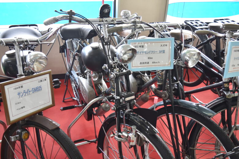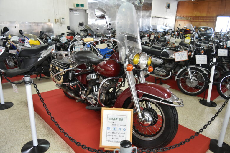 なんと、1930年代から1950年代にかけて製造・販売されていたハーレーダビットソンの国産モデル「陸王」や、現在は船外機や消防ポンプを生産販売し、かつてはホンダをしのぐトップメーカーだった「トーハツ」の姿も。いずれも貴重なバイク資料です。展示車の中から気になった車両を深掘りしてみました。
