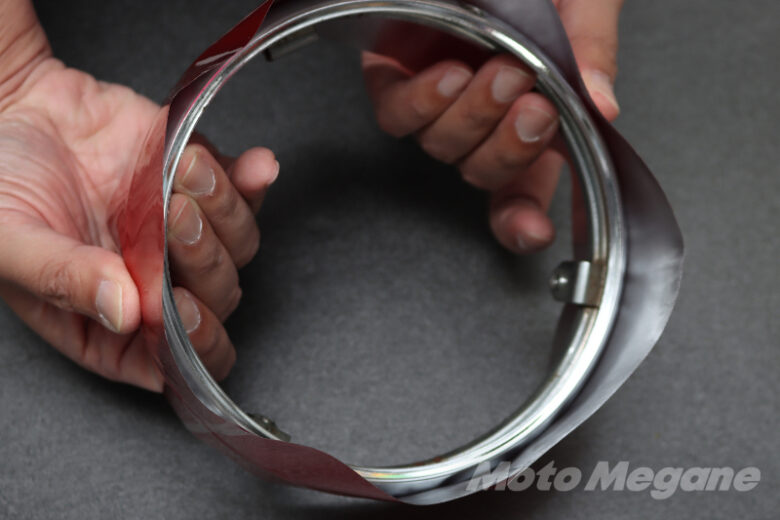 ヘッドライトリムは曲面が急なのでかなり貼りにくかったです。燃料タンクとかフェンダーとかサイドカバーとかはもっと上手いこといくかと思います。