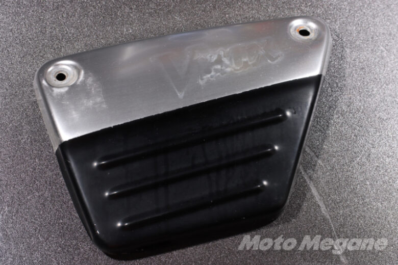 いつか板金して塗り直して着せ替えが楽しめる様に外装部品のスペアのストックも進んでいるのですが、サイドカバーもスペアを持っていたりします。