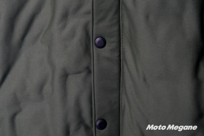 アウターだけならバイク用品メーカーの製品と言われなければわからないほどカジュアルで、普段着として使っても全く問題なしだ。バイクに乗る時だけインナーを着用すればよい。ファスナー前側にはタテを配するなどバイク用として使い勝手の良い設計にはなっているが、かなりカジュアルな路線に寄せている印象を受ける。