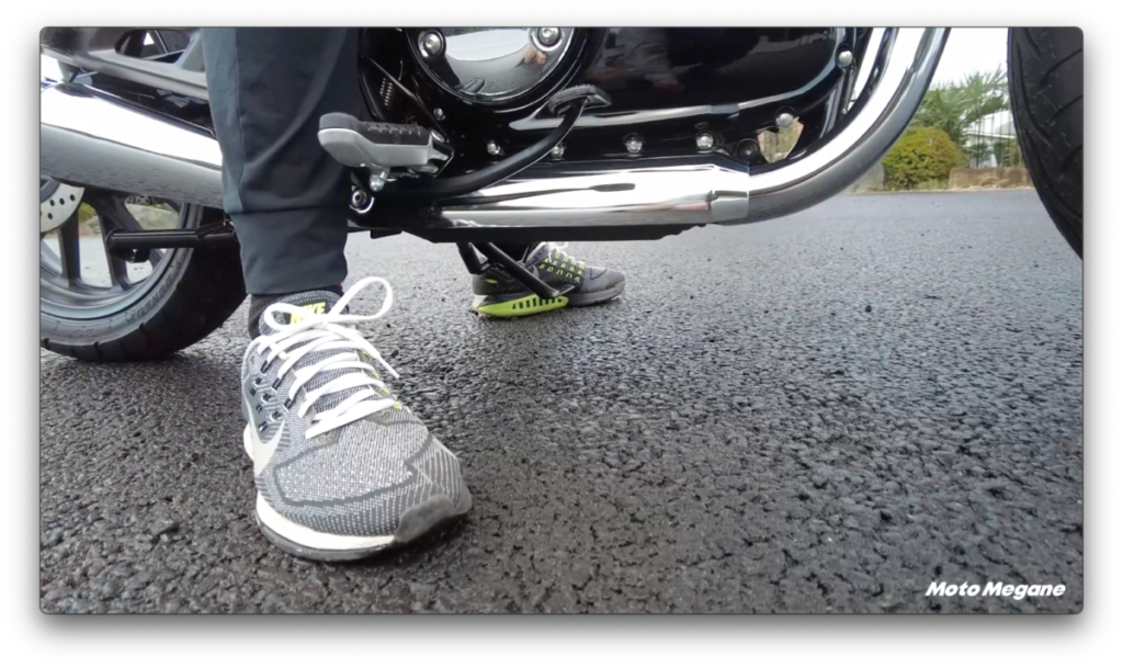 また、停車時に両足をべったり地面に着けるためには、股下が79cm以上ないと難しいのかもしれない。