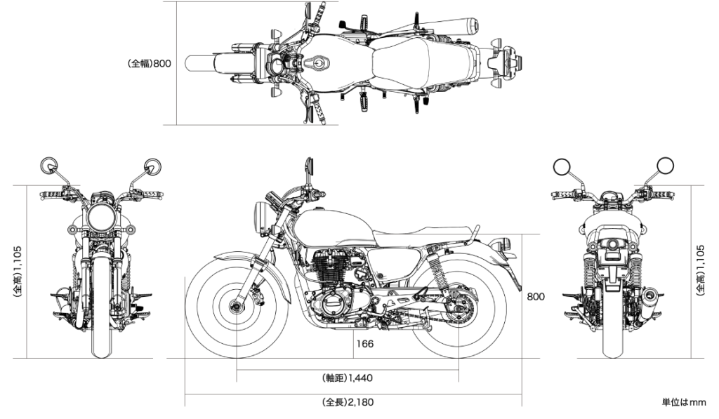 ちなみに単気筒なのに全幅が800mmもあるの?と思うかもしれない。