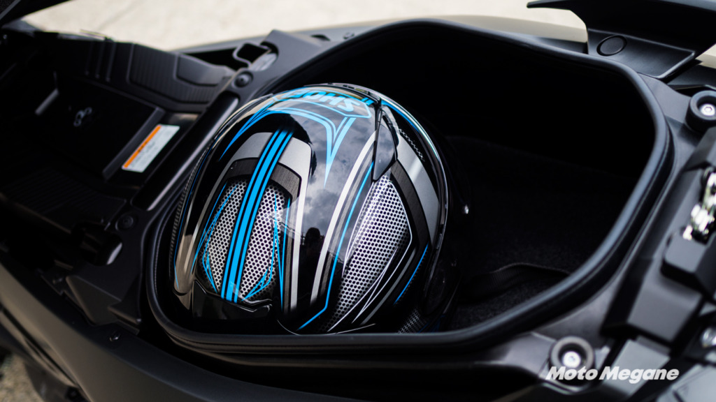 フルフェイスヘルメットは1個は余裕で収納可能。サイズや形状によっては2個入るかもしれません。