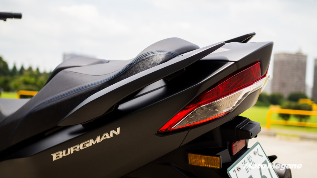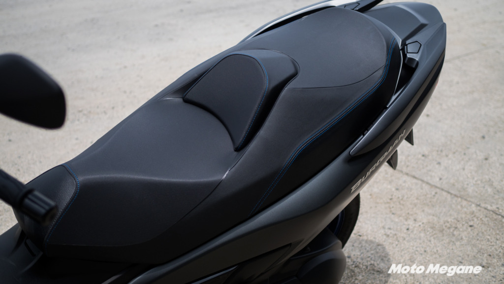 最近の250㏄ビッグスクーターはサスペンションのセッティングが固めな傾向がありますが、バーグマン400 ABSは前後とも柔らかく厚いクッションのシートと併せてラグジュアリーなイメージを演出しています。