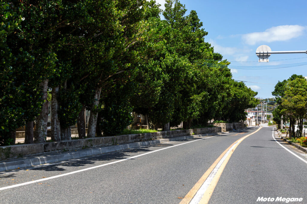 沖縄県道86号は沖縄自動車道・南風原南IC付近を起点とし、国道331号と交わる南城市知念字吉富が終点だ。県道86号に限ったことではなく沖縄県南部の道は道幅が狭く、住宅地や集落周辺を通ることがほとんど。生活道路であるため、バイクで飛ばすことなくゆっくりと景色を楽しみたい。
