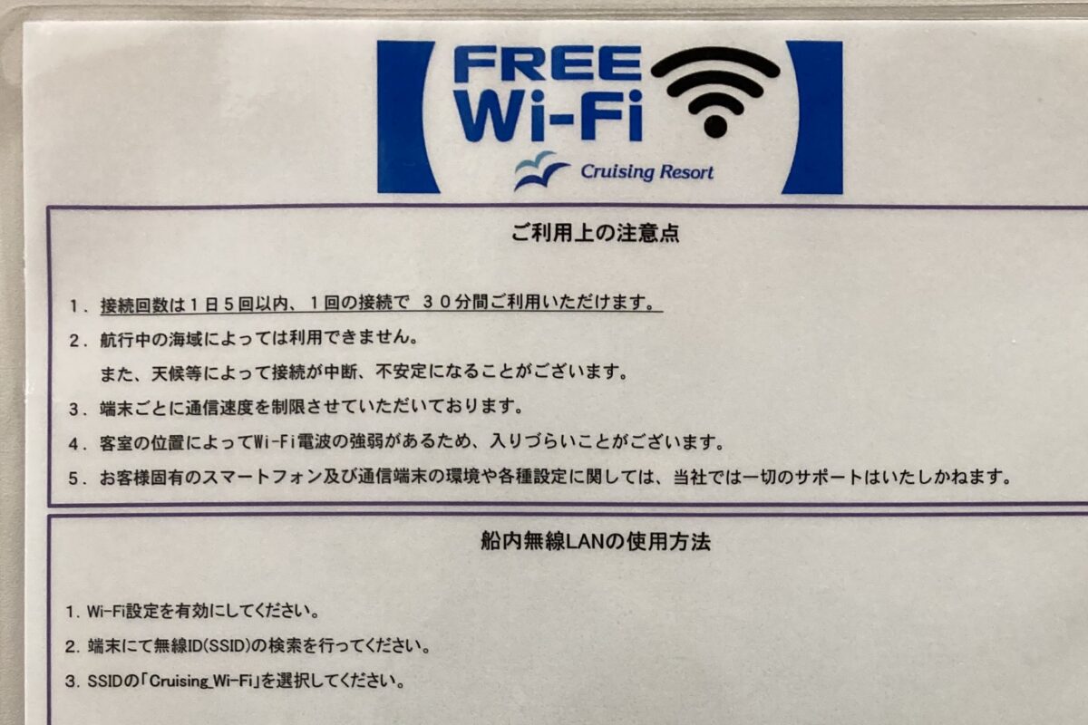 なお同じ船内でも、場所によってつながりやすさが違うとのこと。