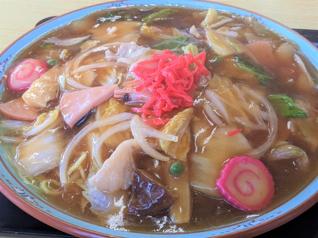 みそラーメンに次いで2、3番目に人気だという「あんかけラーメン」をオーダーしました。「あんかけ焼きそば」との違いは麺が固焼きでないこと。皿からこぼれ落ちそうなほど具だくさんで味も確か。チェーン店にはない素朴な味でした。