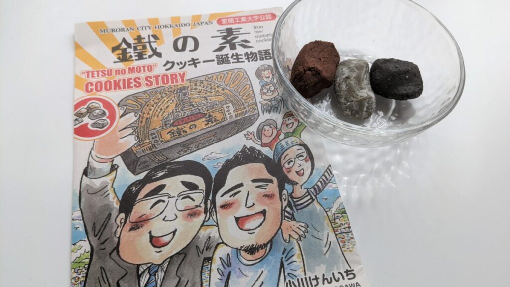 せっかく室蘭を訪れたのなら「鉄の街」にふさわしいお土産が欲しいもの。ぜひ購入して帰りたいのが「鐵の素クッキー」です。室蘭工業大学(以下:室工大)の清水一道教授が「国内外へ出張する際に持参できる室蘭らしい菓子があったらいいな」と考案。室蘭市中島町シャンシャン通りにある「ナニナニ製菓」が商品化しました。