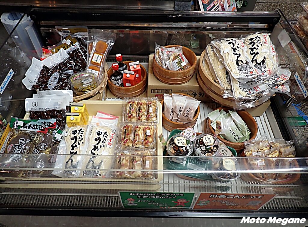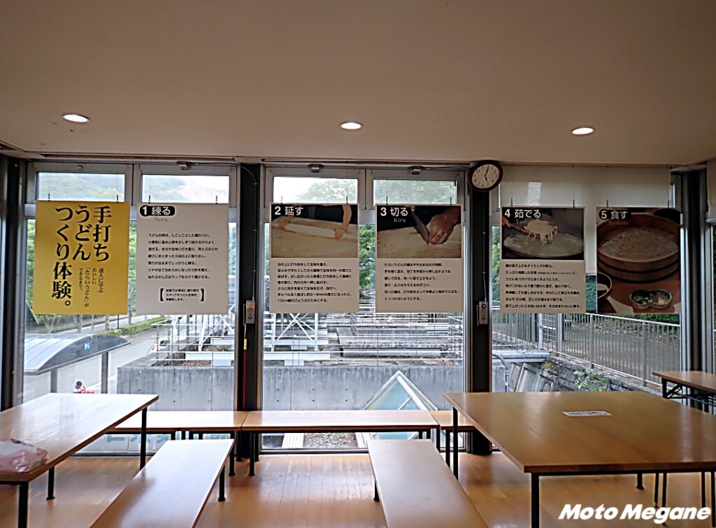施設には、喫茶軽食コーナー、売店、体験施設が入っており、屋外入り口には団子屋が営業している。売店では、地域の農産物や特産品、地元の作家の手作りクラフト作品、土産品などを販売。喫茶軽食コーナーでは、軽食から定食やカレーなどガッツリ系の食事まで提供。猪肉うどんやキジ肉丼などのジビエ料理や、名物たらいうどんを味わうことができる。軽食メニューも充実し、モーニングやホットドックなど種類豊富だ。