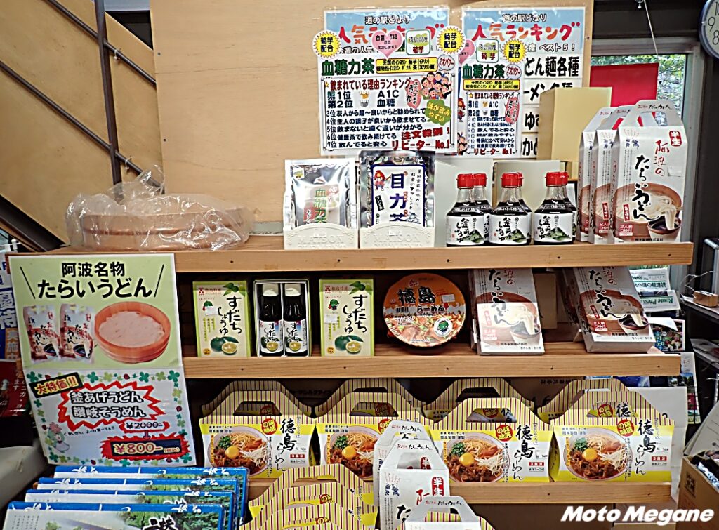 敷地内には、徳島県など地域のお土産品の自動販売機が設置されており、24時間お土産が購入できる。