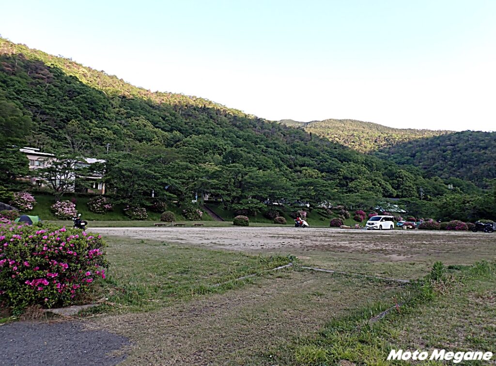 道の駅から道路の反対側にある公園で、無料でキャンプが可能。バイクの乗り入れもOK。設備は水場のみで、トイレ・炊事場は無し、トイレは道の駅を利用する。自然に囲まれロケーションは良いが、国道沿いでクルマの走行音があるので、気にならない人におすすめ。