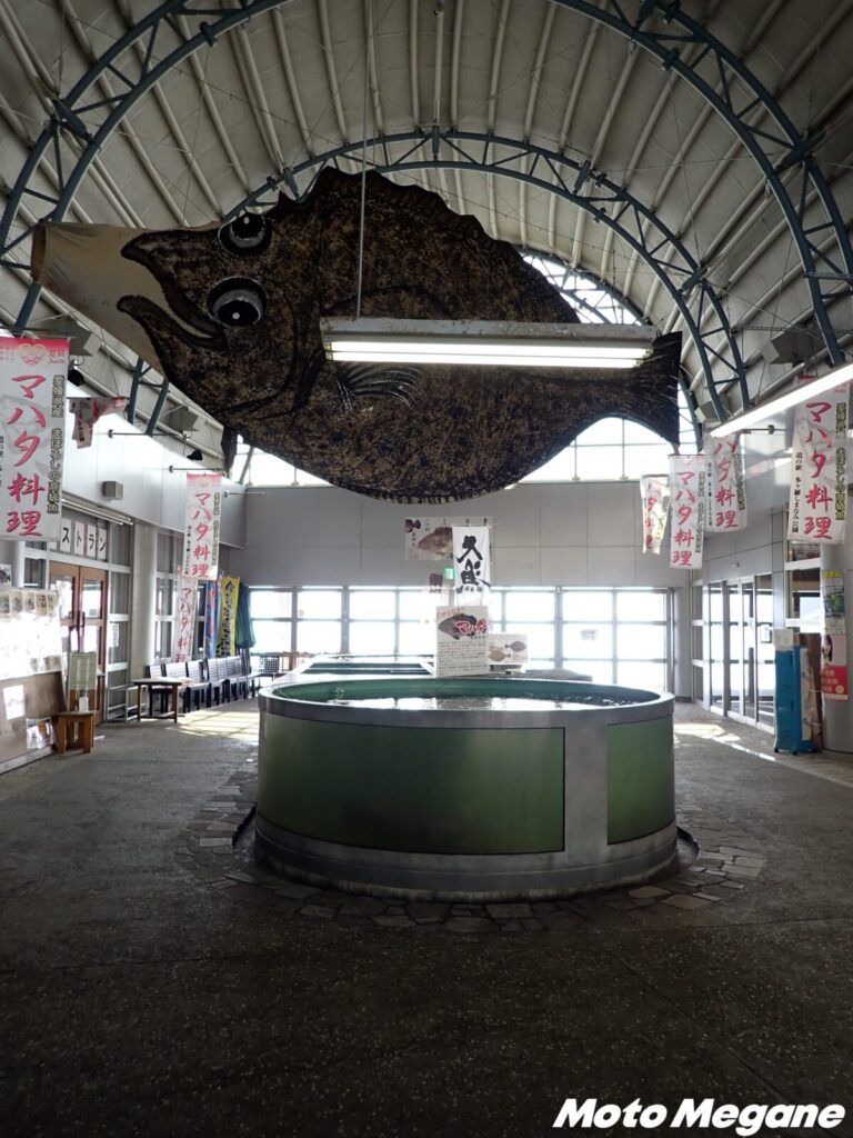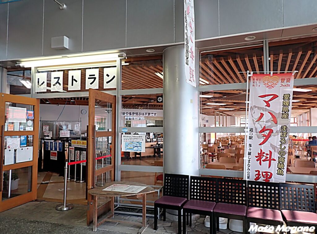 レストランでは、幻の高級魚といわれるマハタ料理やヒラメ料理などの海鮮料理や、丼もの、軽食などを提供。広々とした店内には135席のテーブル席とテラス席が用意されており、テラス席では多々羅大橋を眺めながら食事を楽しめる。