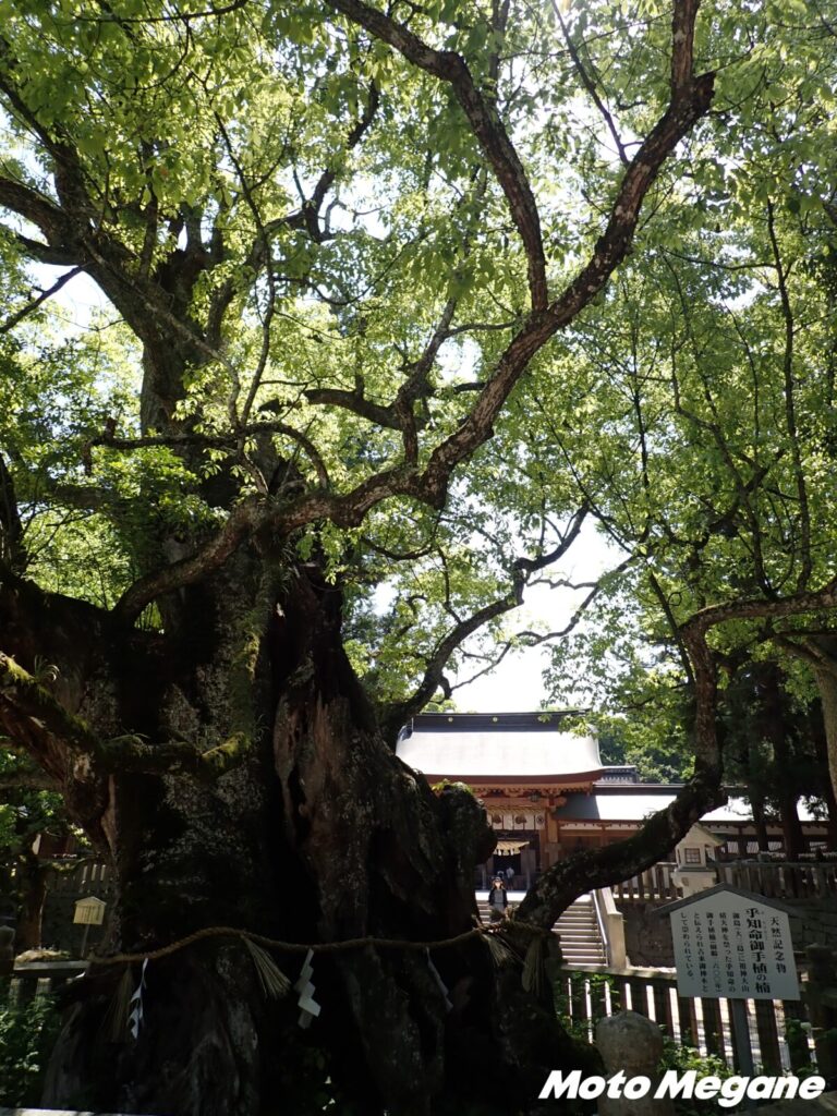 日本建国の神・大山積大神(おおやまづみのおおかみ)を祀る神社。厳かな雰囲気で、パワースポットとしても知られている。檜皮葺き屋根の社殿は国の重要文化財に指定されている。境内の樹齢2600年の大楠は神秘的な姿。これは必見。ヘルメットの中にも入れられる交通安全のお守りを受けられる。