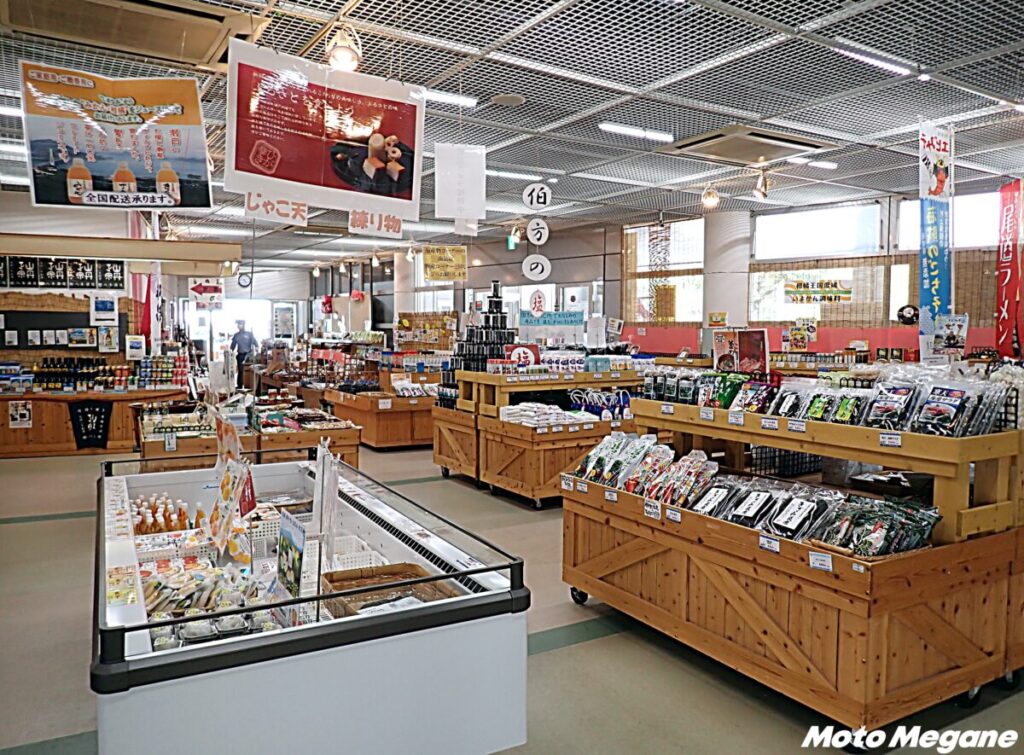 道の駅は物産品センター、レストラン、フードコート、農産物直売所からなる。正面入り口から中に入ると大きないけすが設置されており、中ではマハタやマダイなど瀬戸内の魚が泳いでいる。物産品センターには、地元の特産品をメインに愛媛県のお土産品など1600以上の商品が並ぶ。柑橘類のジュースやゼリーが人気で、品種別に多種ラインナップされている。