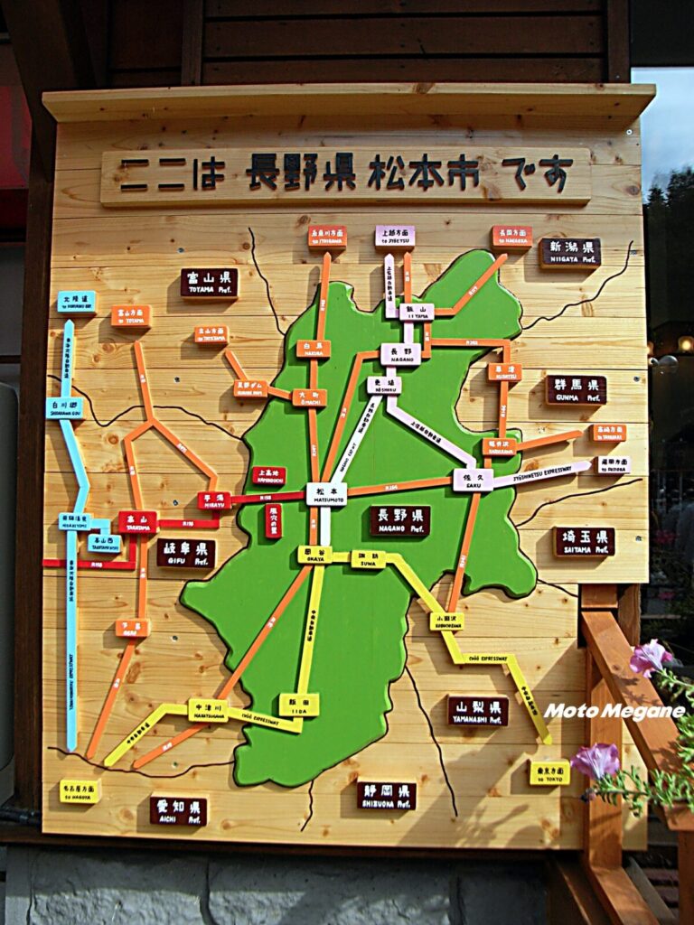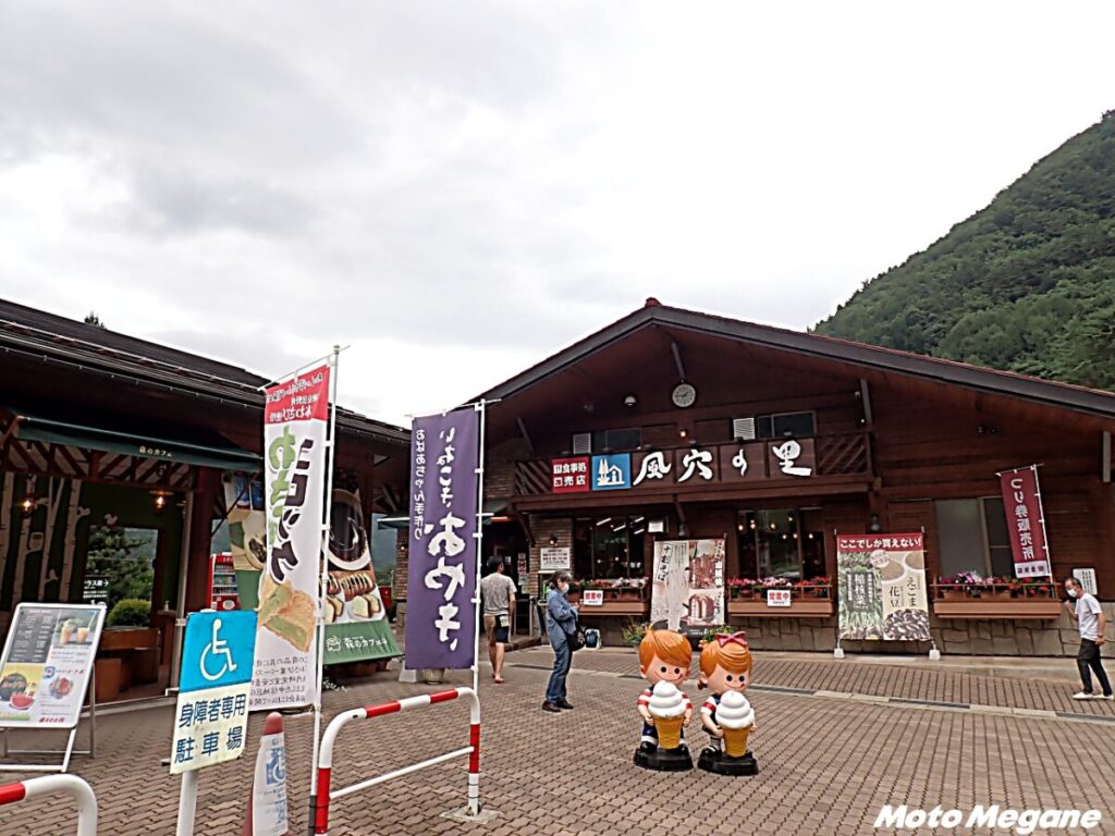 R158は松本市内と飛騨高山を結ぶ道で、道の駅周辺は梓川沿いに走り、その先は安房峠に向かうにつれワインディングとなりライディングと景色を楽しめる絶好のツーリングルートである。飛騨高山から松本方面までの間にある道の駅はここだけ。郷土色のあるお土産が買え、ご当地グルメを堪能できる道の駅は、立ち寄りスポットに最適だ。