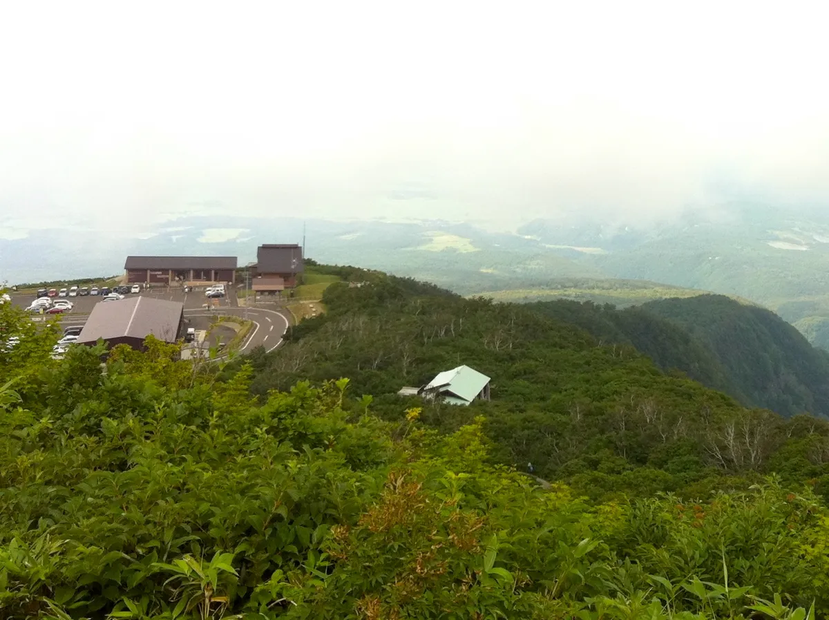 鳥海ブルーラインのハイライト区間を雄叫びを上げながら走っていると、鳥海山最大のパーキングエリア「鉾立(ほこだて)」が見えてきます。