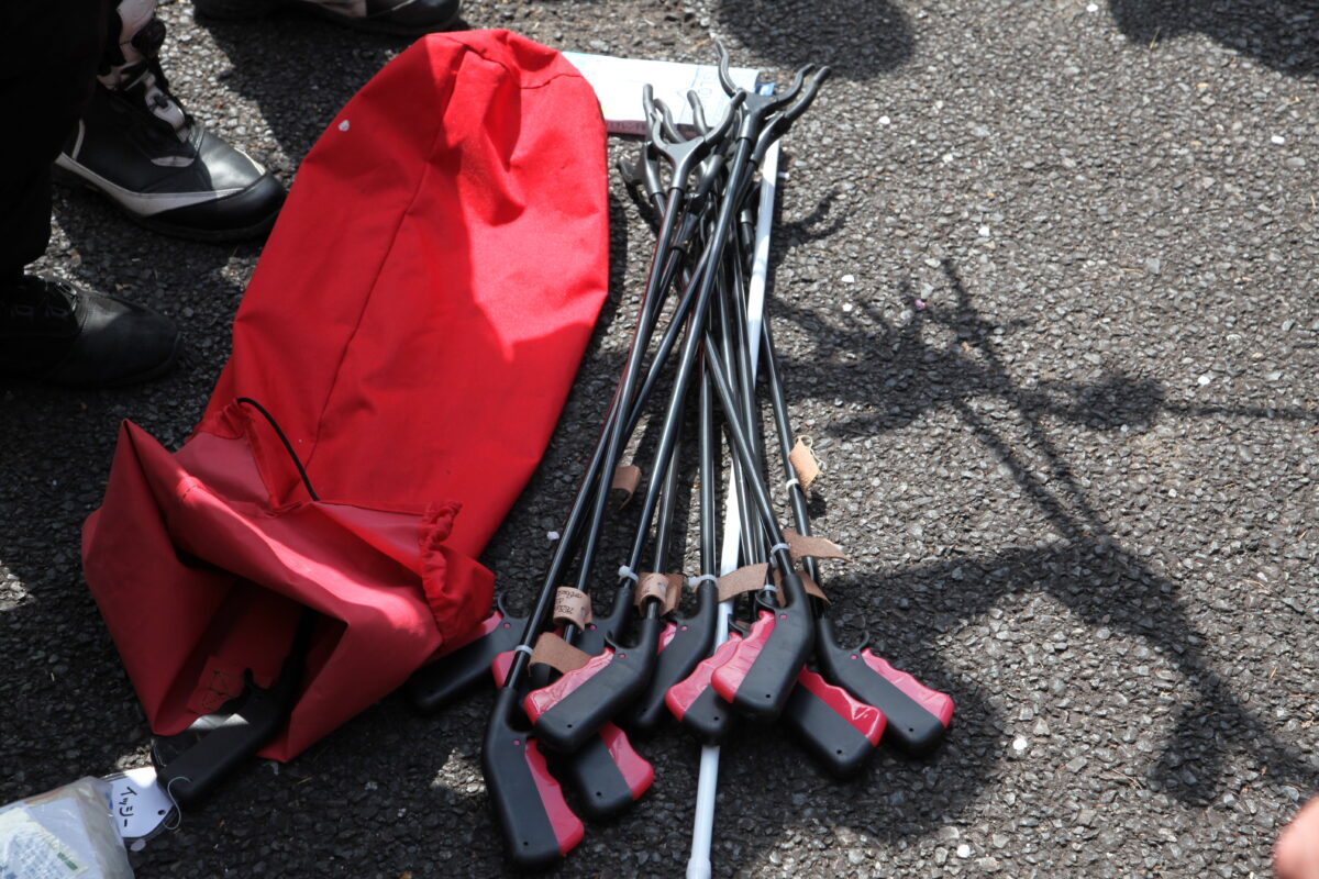 当日は時折パラパラと雨が降ってくるお天気だったが、スタッフさんを含めて18台ものバイクが集まっていた。ゴミ拾いは一箇所15分ていどと短めだが、それでも多くのゴミが集まった。中には古い空き缶があり「これ、昭和じゃないの?」と盛り上がる場面もあった。楽しく過ごすことができるのだ。また、施設の方からお礼を言われる場面もあり、お互いが気持ち良く利用できる土壌ができあがっていた。