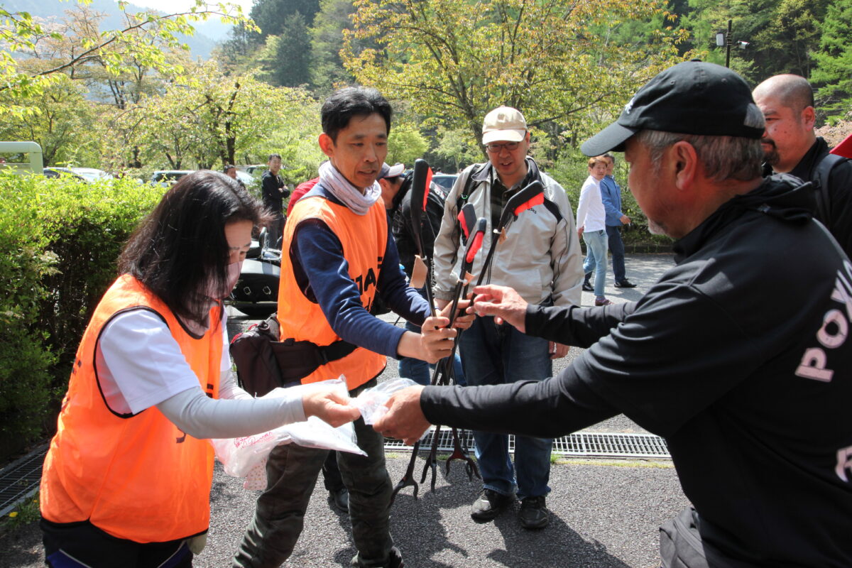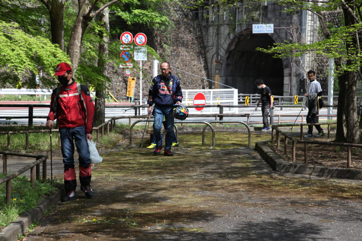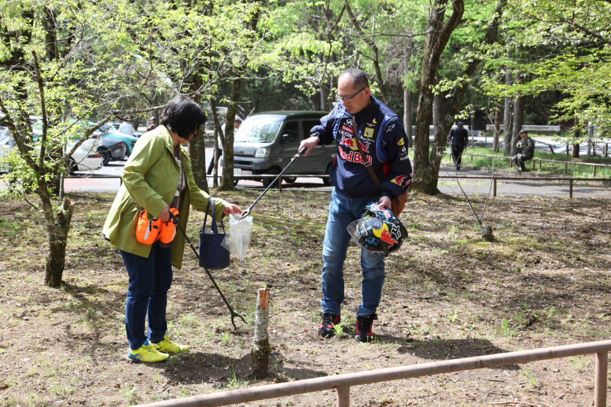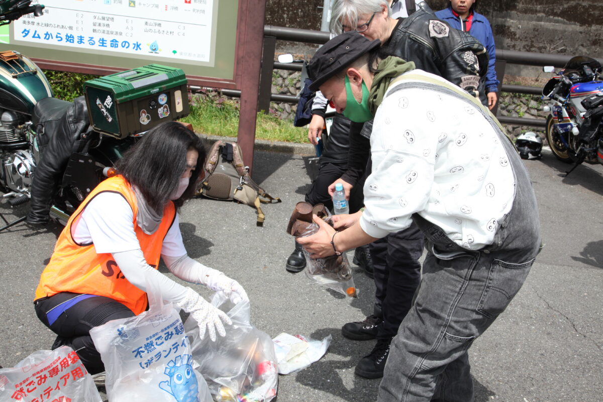 少し曇りがちの天気ながら、第三日曜日にあたら4月21日の奥多摩湖にはたくさんの車やバイクが集まっていた。その中で片手にビニール袋、反対の手にはトングやマジックハンドを持ってゴミを拾うライダーの姿があった。
