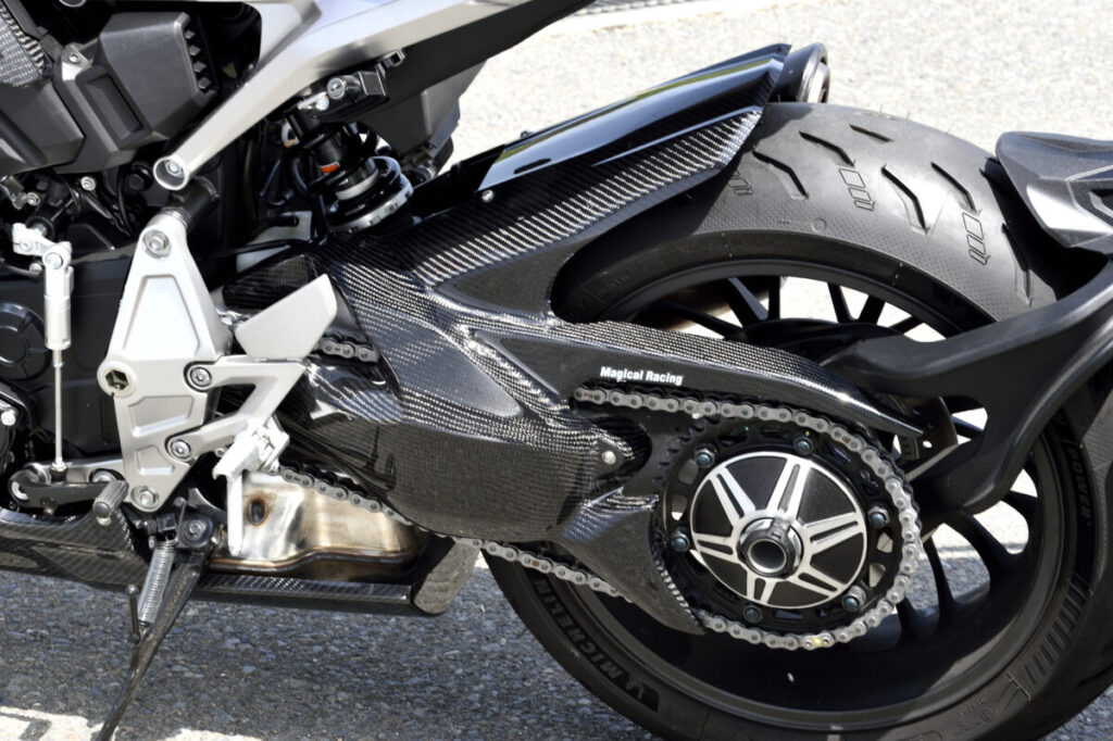 株式会社マジカルレーシングは、CB1000R用リアフェンダー、アンダーカウルを発売した。リアフェンダーは、チェーンガード一体式となっており、リア周りの整流性向上と泥ハネを防止するアイテムである。アンダーカウルは、オイルキャッチ構造のため、万が一のオイル漏れの場合にオイルが路面へ漏れ出すのを防ぐアイテムだ。いずれも、FRP、平織りカーボン、綾織りカーボンをラインナップしている。