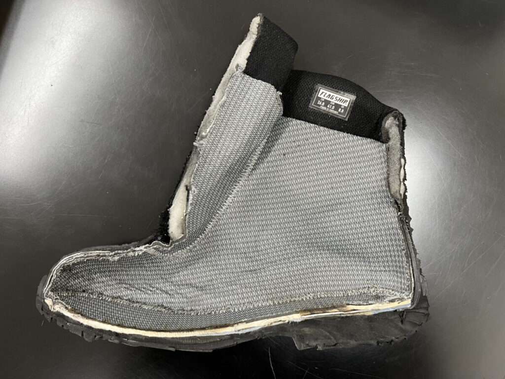具体的な例として弊社のセメント製法で作られたブーツを半分に切ってみました。