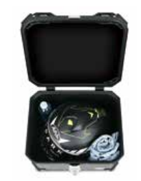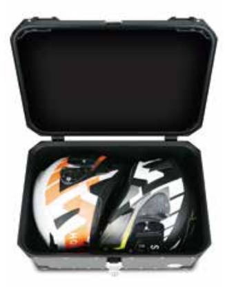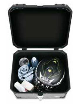 余裕の大容量タイプ。一般的なフルフェイスヘルメットであれば、2 個を収納可能。インナーライナーと荷掛けレールを標準装備しており、付属のベースプレートを車両リアキャリアへ取りつければ、車両からのトップケース取り外しが簡単に行えます。