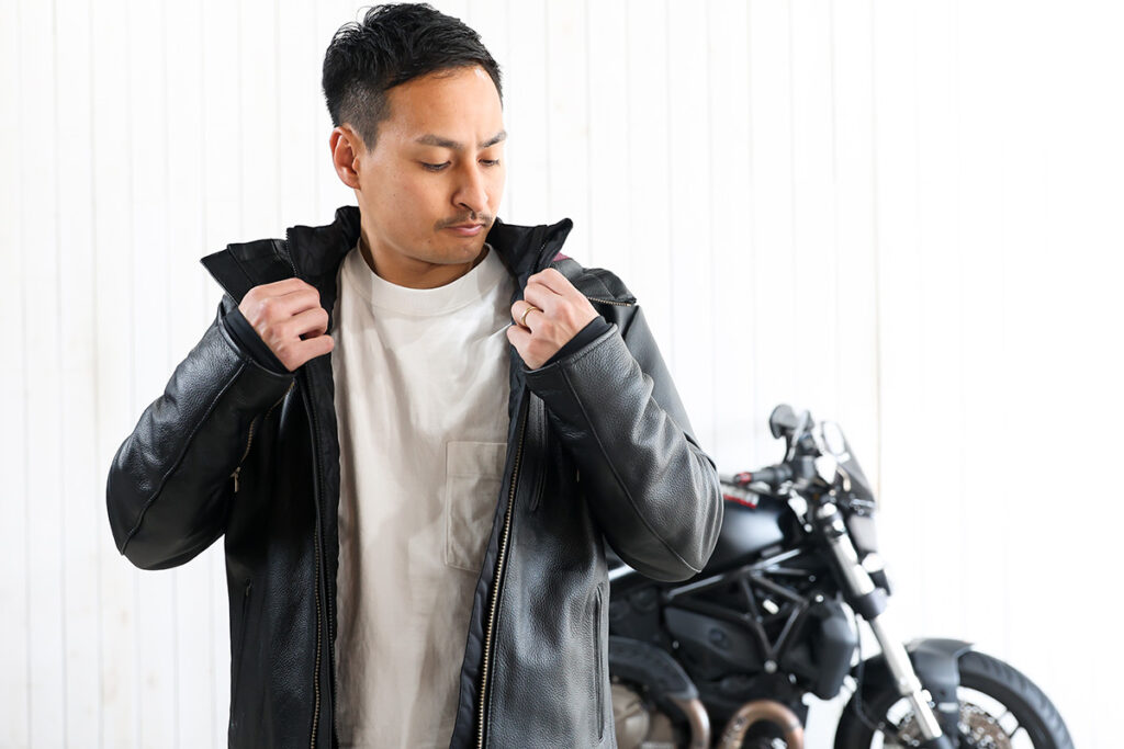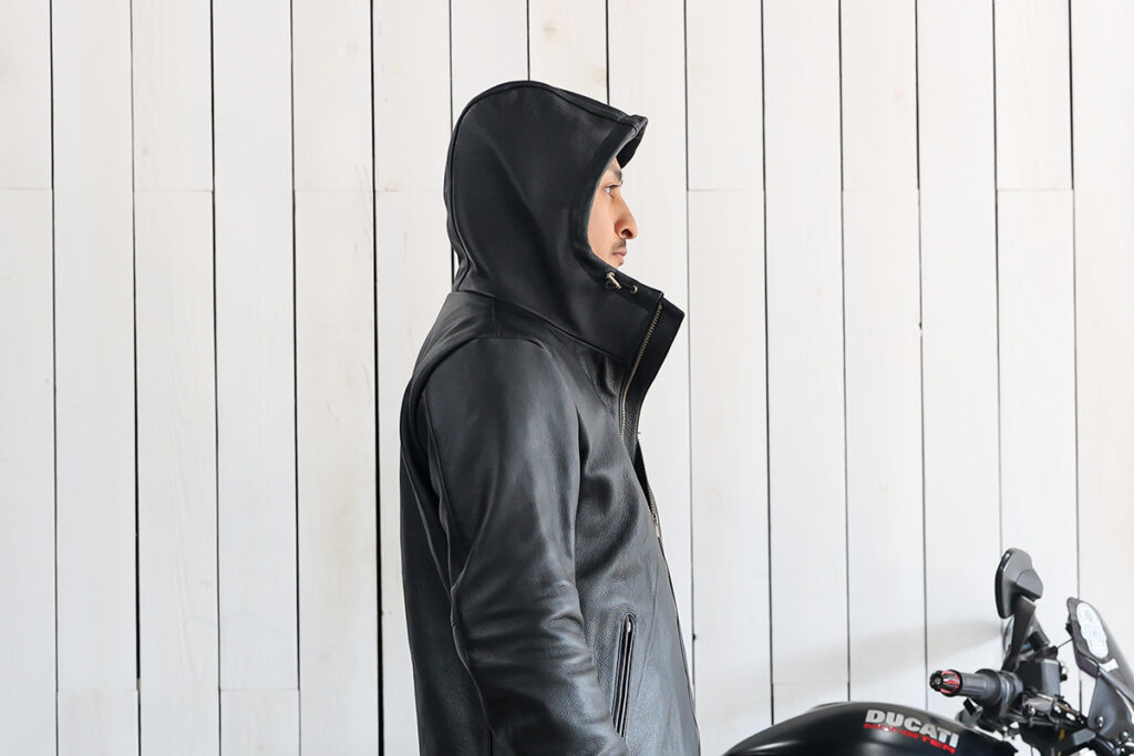 Darkのレザーフードジャケットはハイエンドなだけでなく、「バイクに乗る事」を一番に考えた設計です。